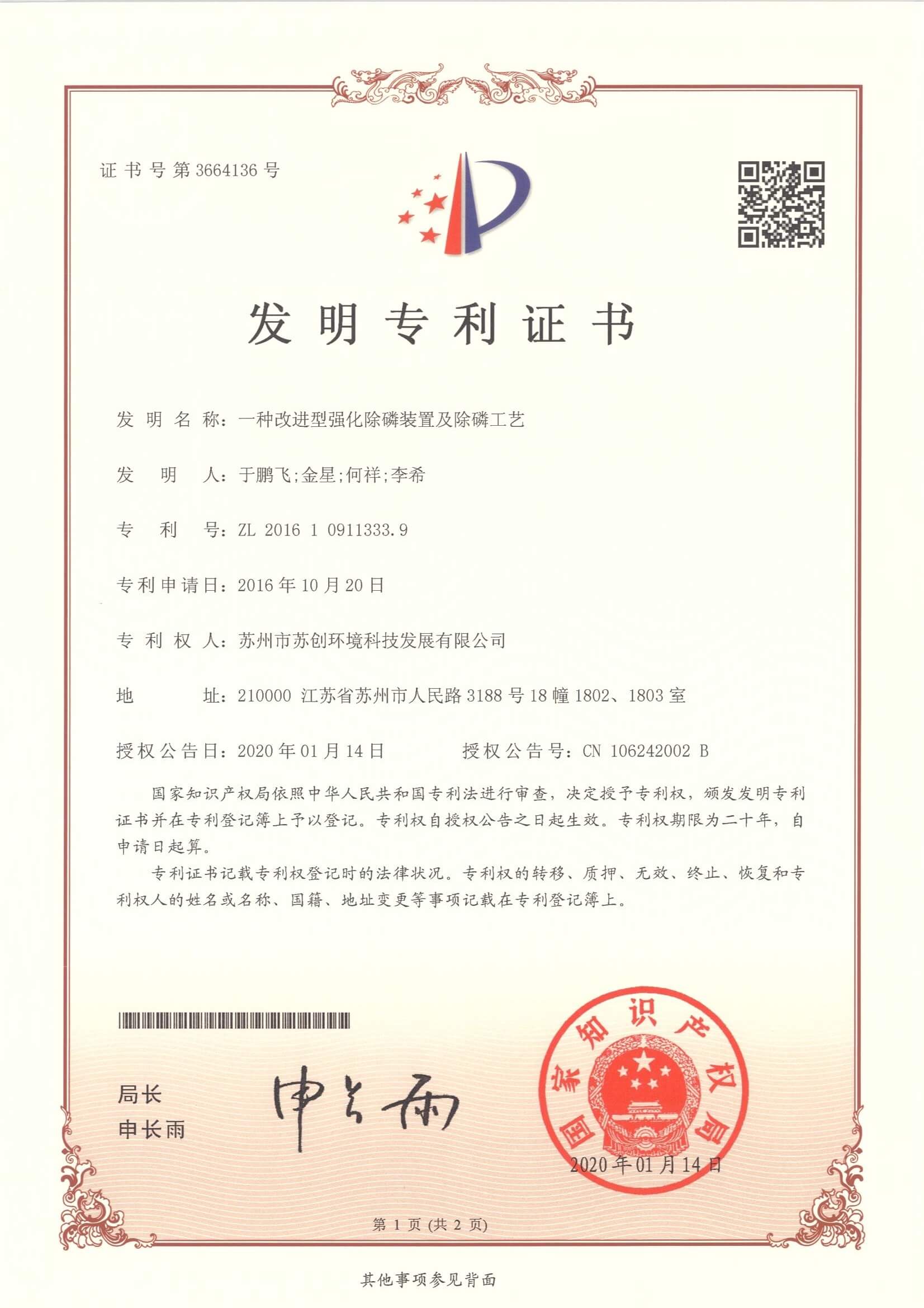 磁分離+反硝化+曝氣生物濾池一體化裝備 采用磁沉淀和曝氣生物濾池相結(jié)合的水體凈化工藝蘇創(chuàng)環(huán)境 · 專利與榮譽成果